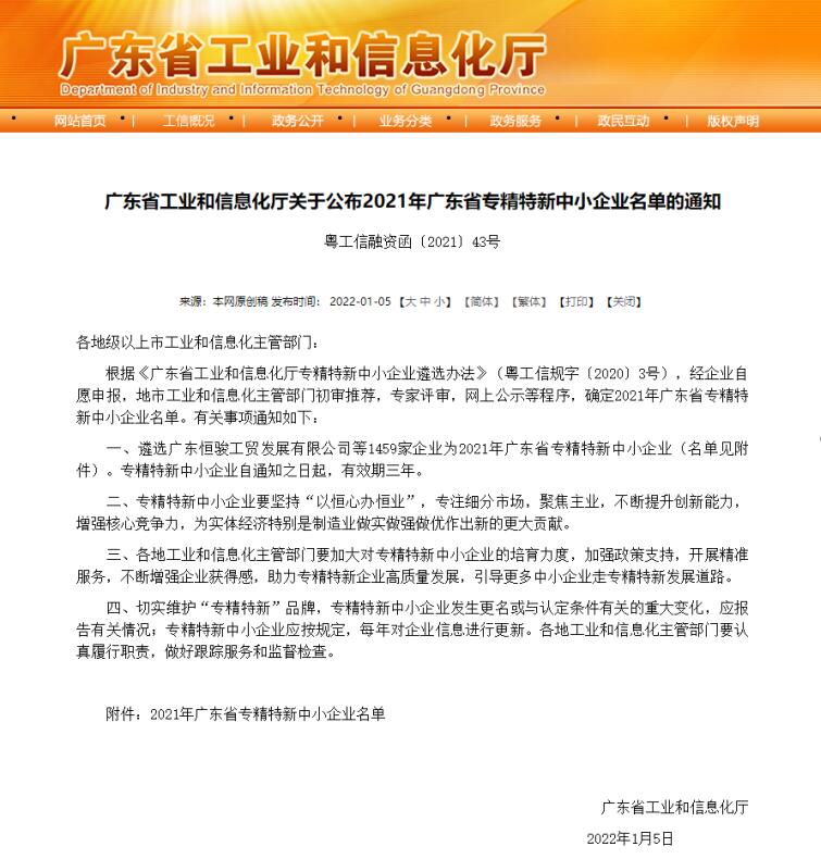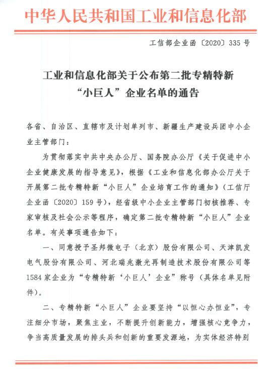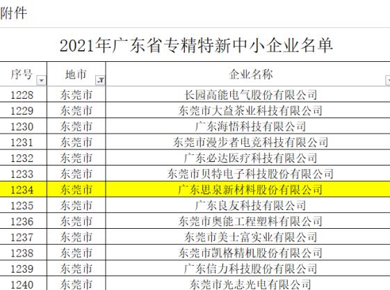 2020年12月,根據(jù)中華人民共和國(guó)工業(yè)和信息化部發(fā)布的通告,思泉新材獲得第二批專精特新“小巨人”企業(yè)的稱號(hào)。