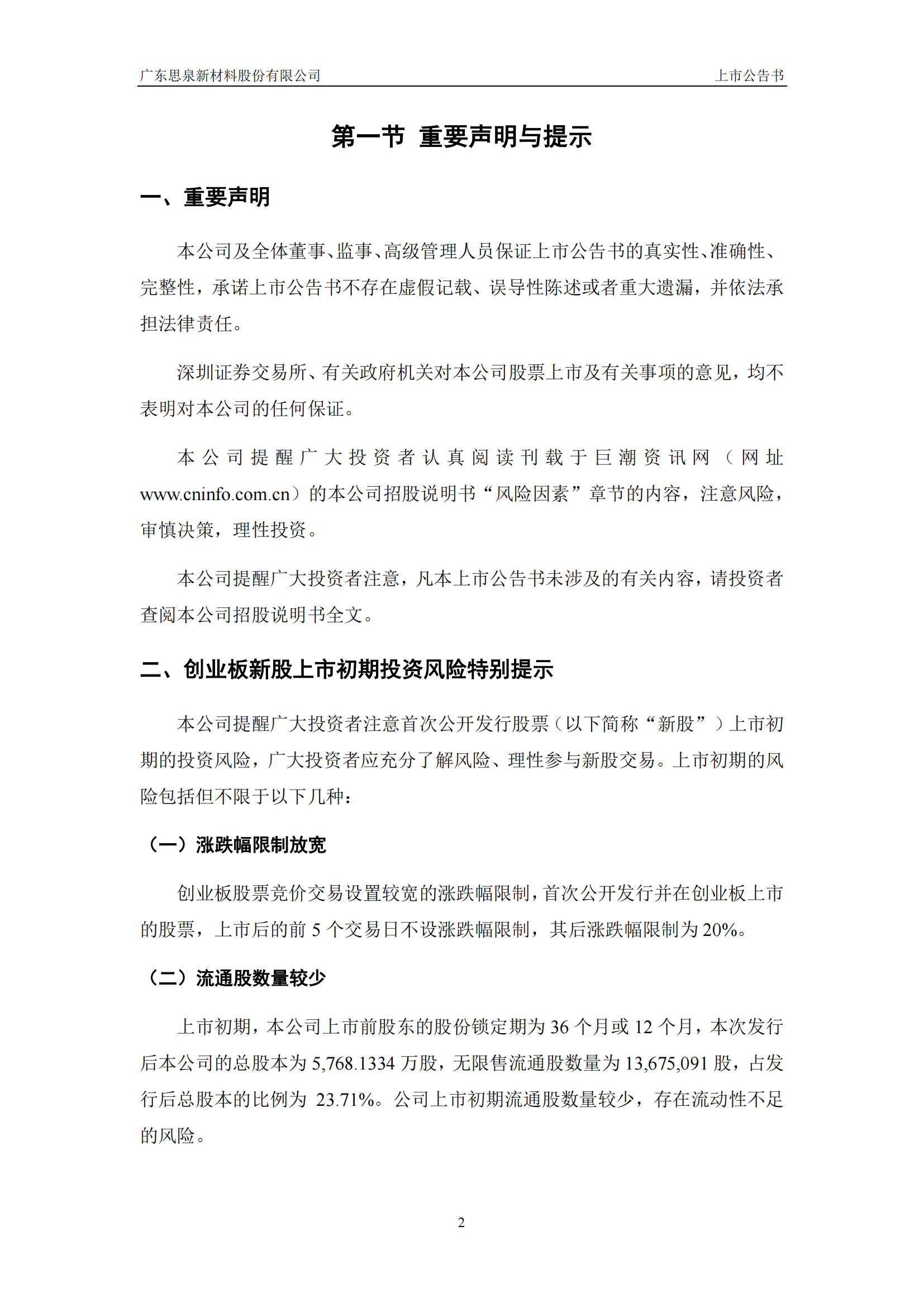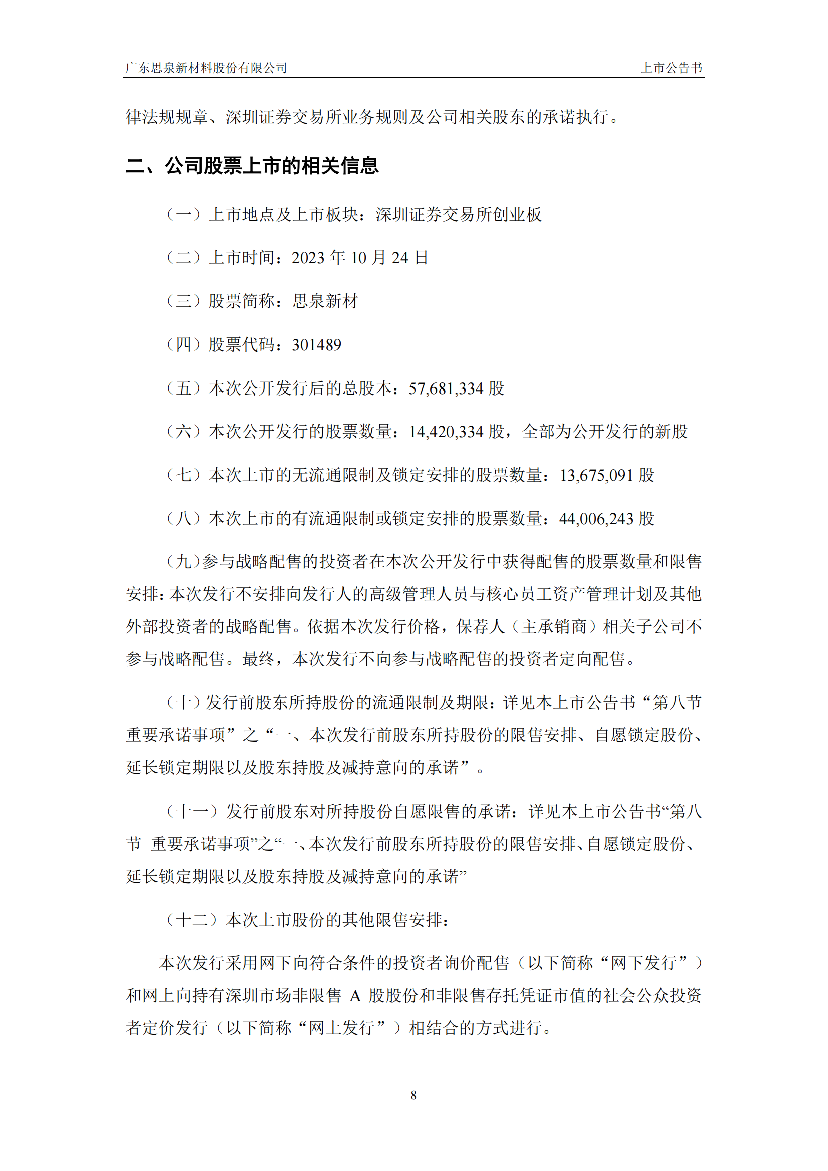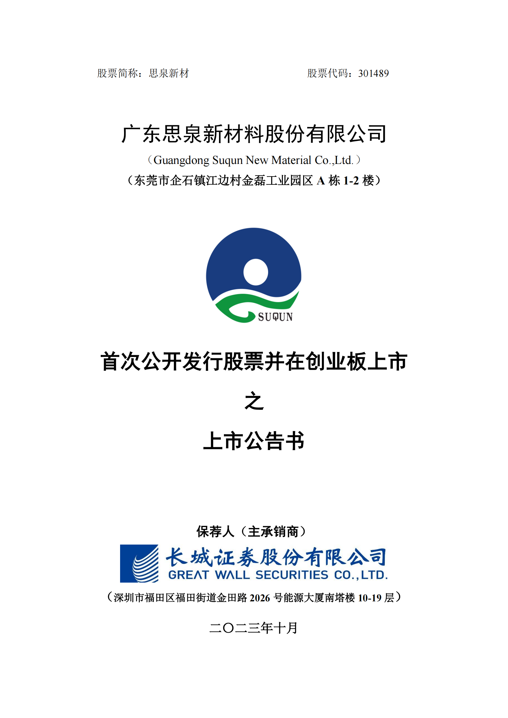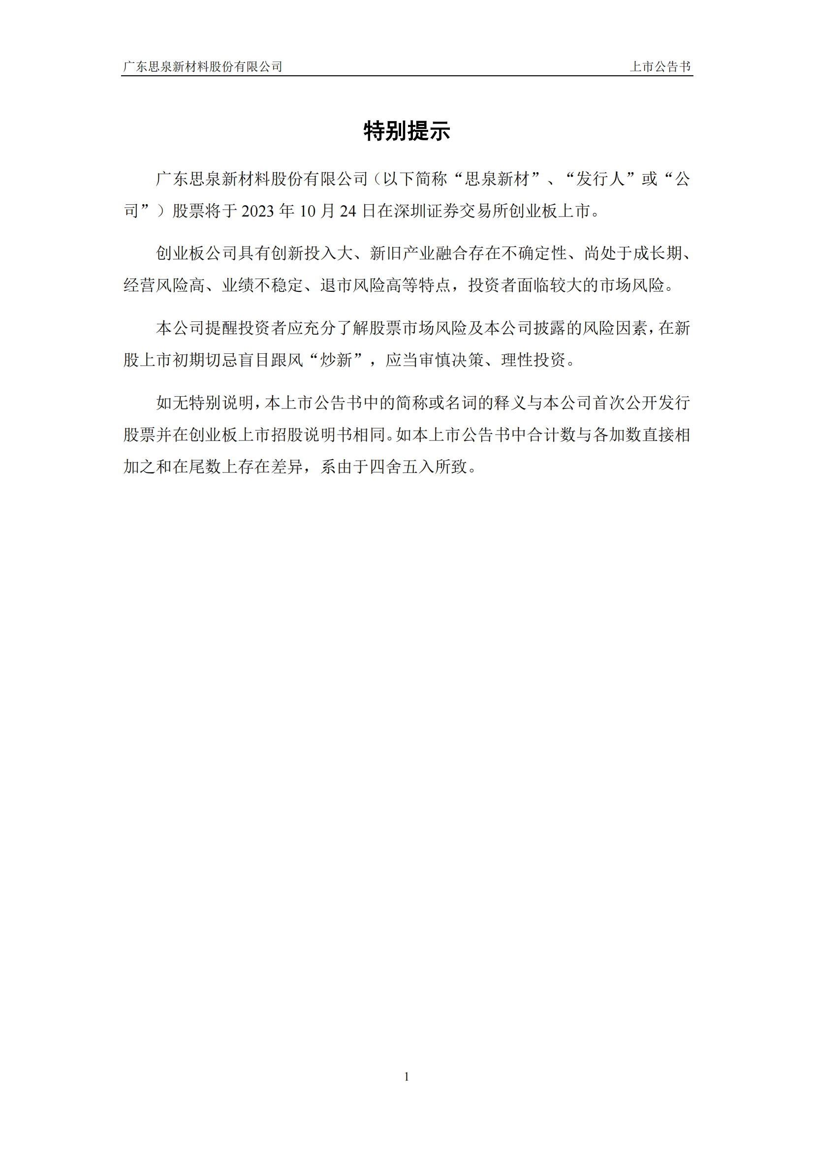 思泉新材上市公告書