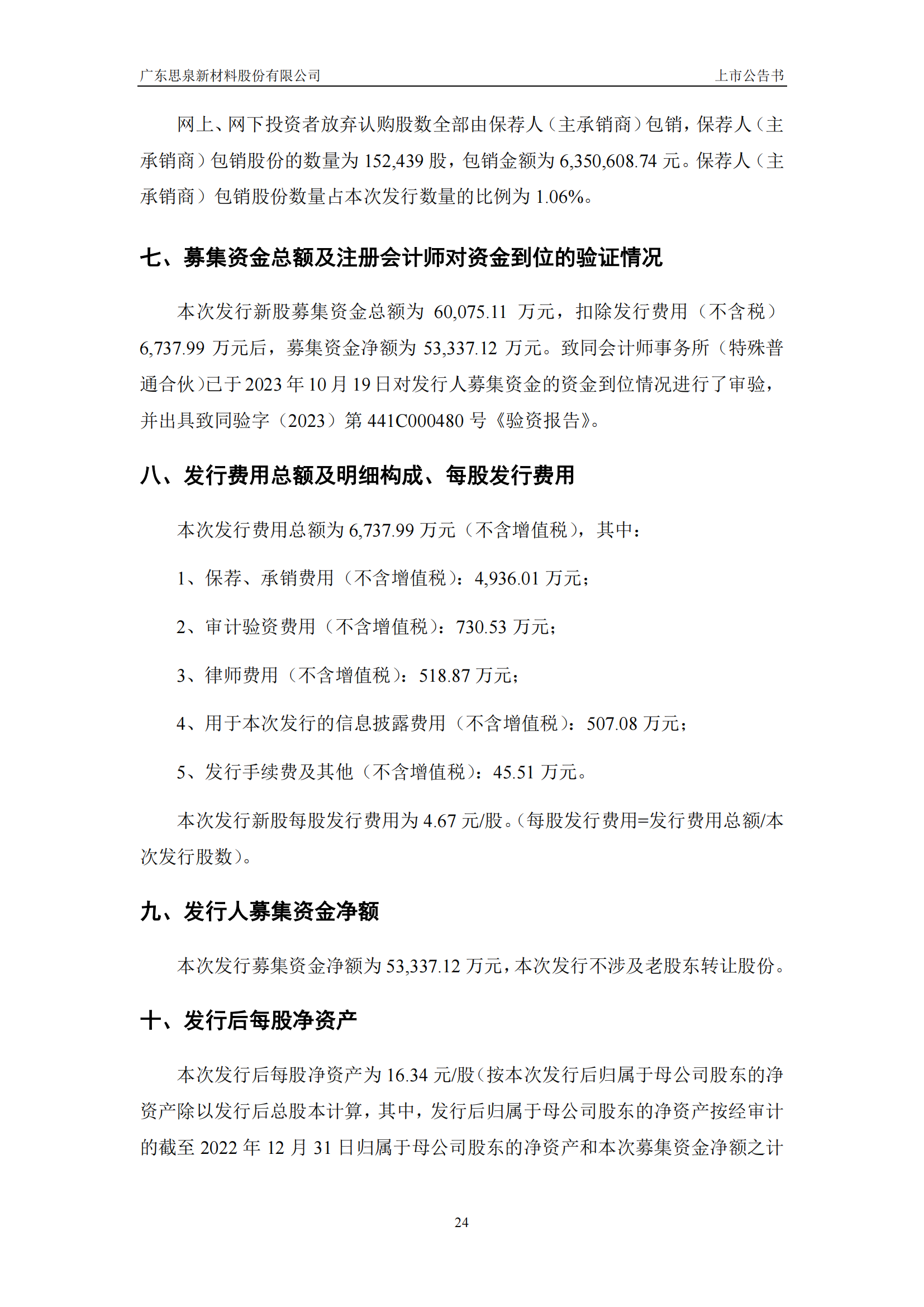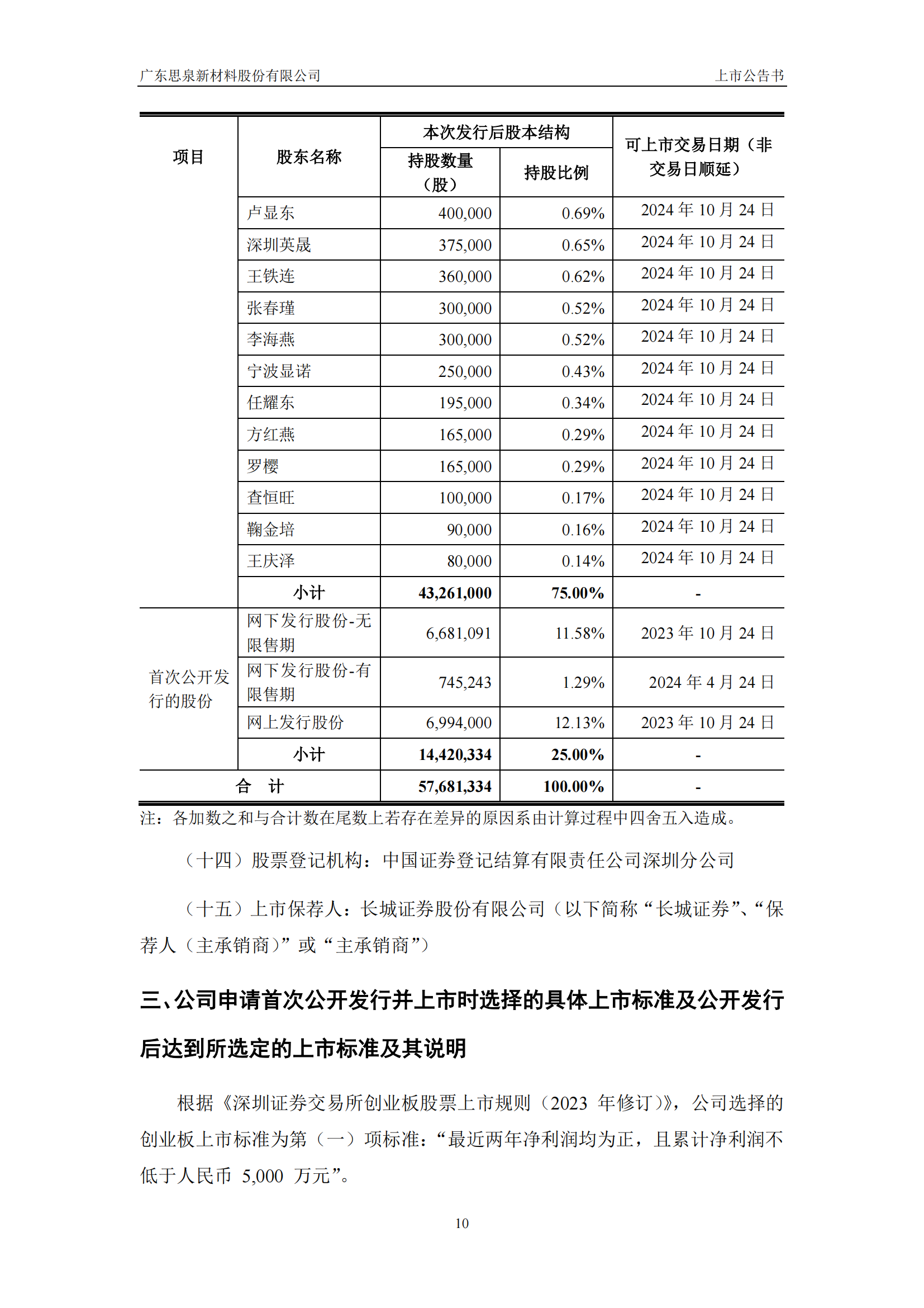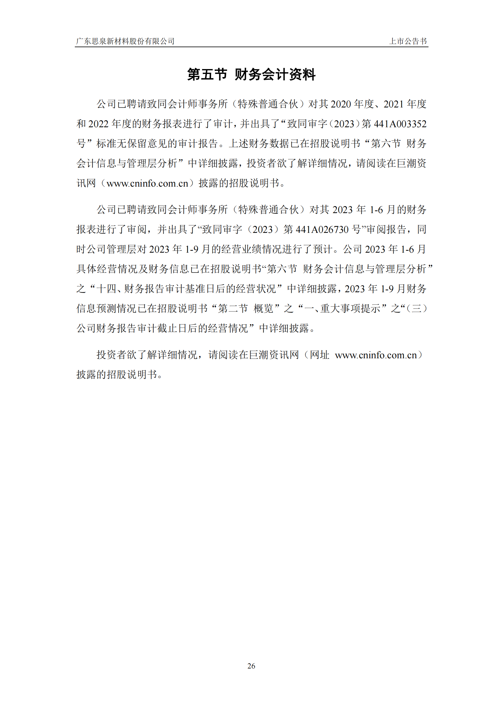 思泉新材上市公告書