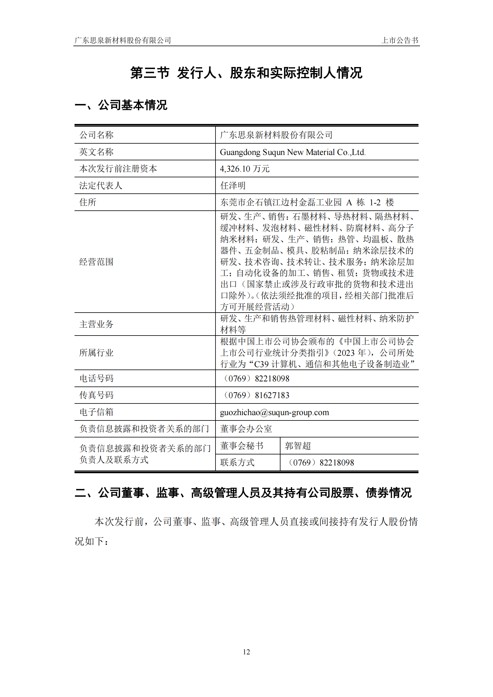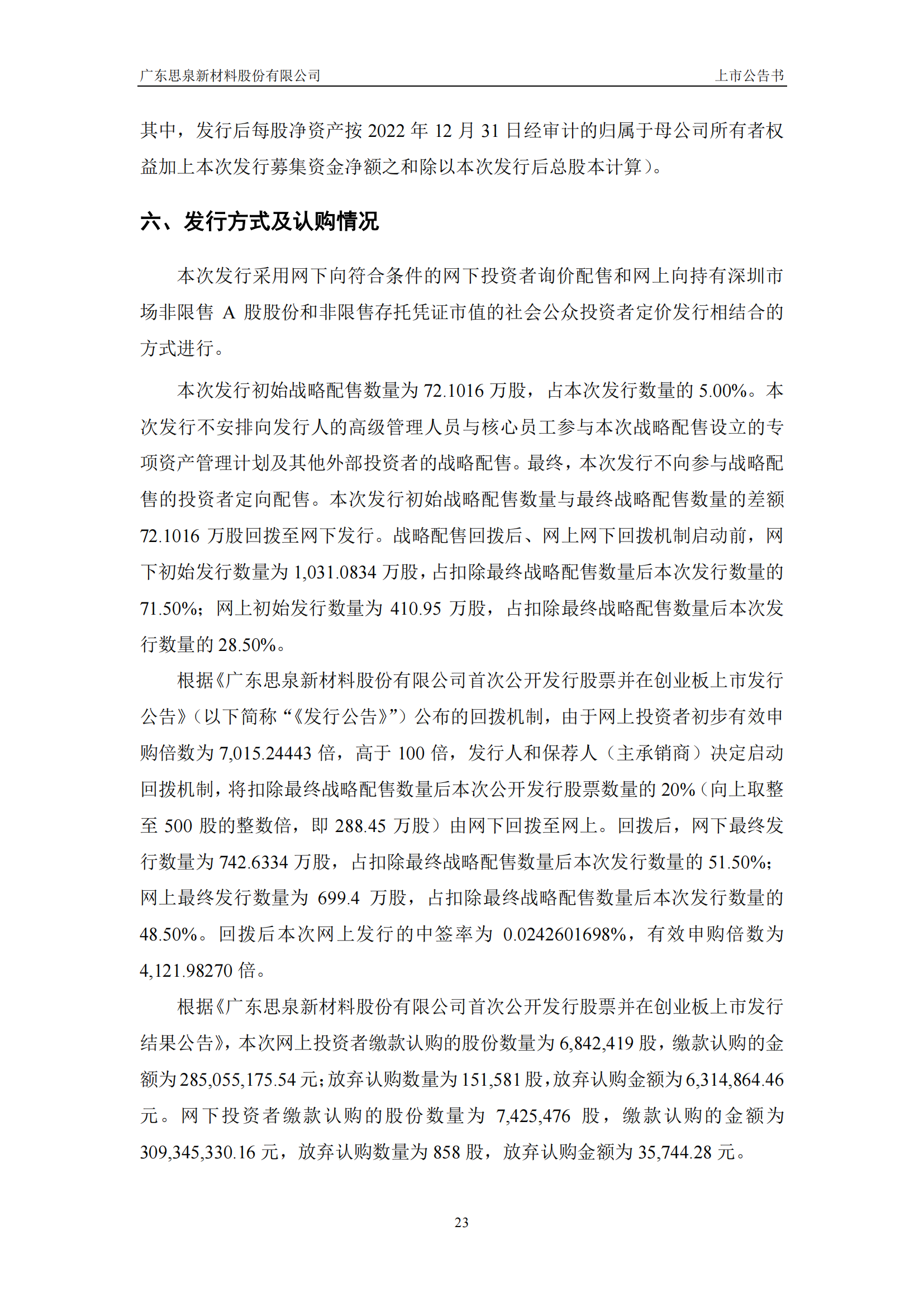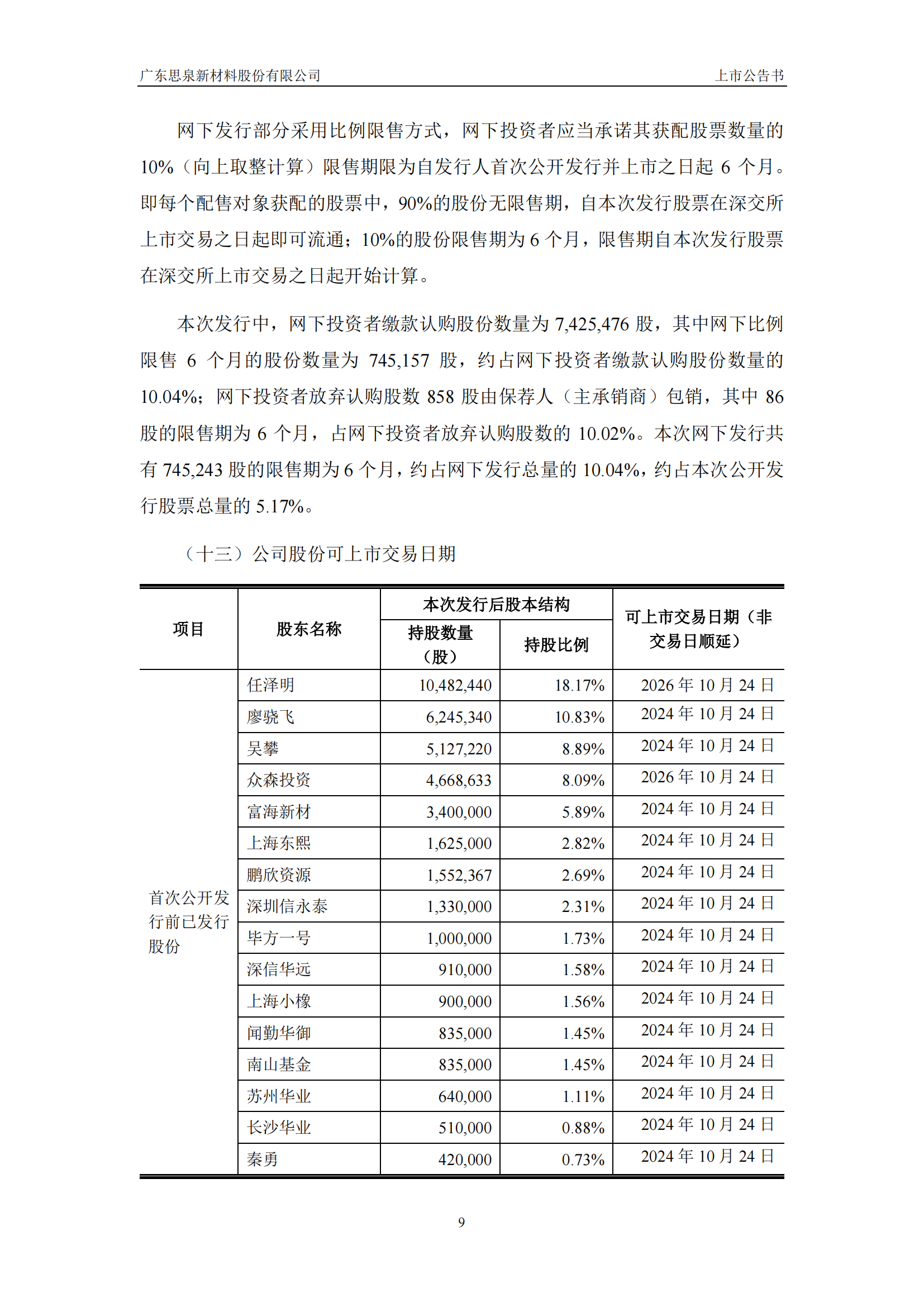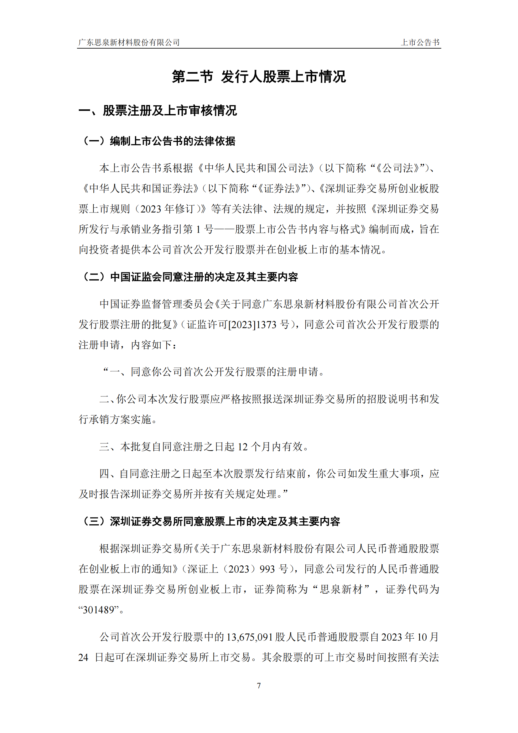 思泉新材上市公告書