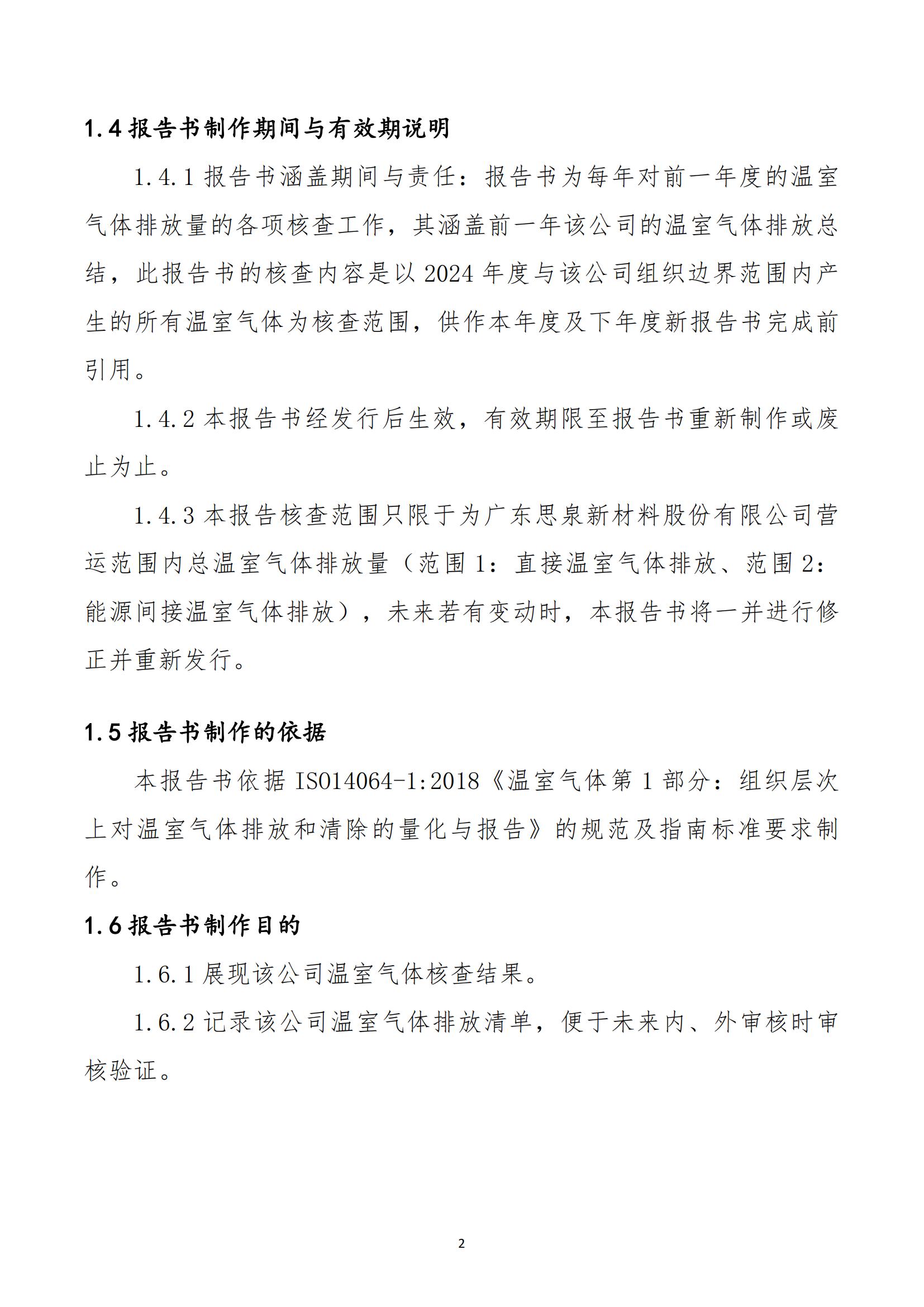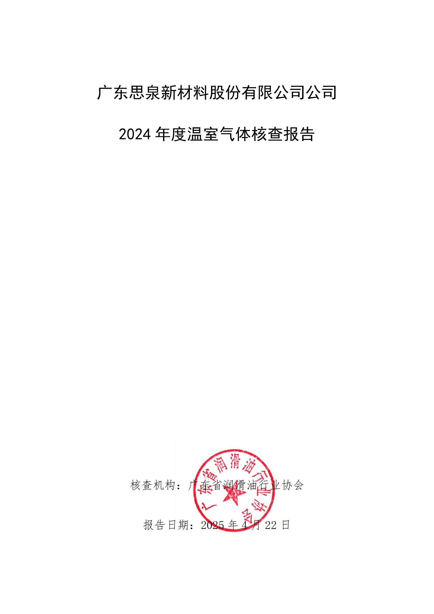 思泉新材——2024年年度溫室氣體核查報(bào)告